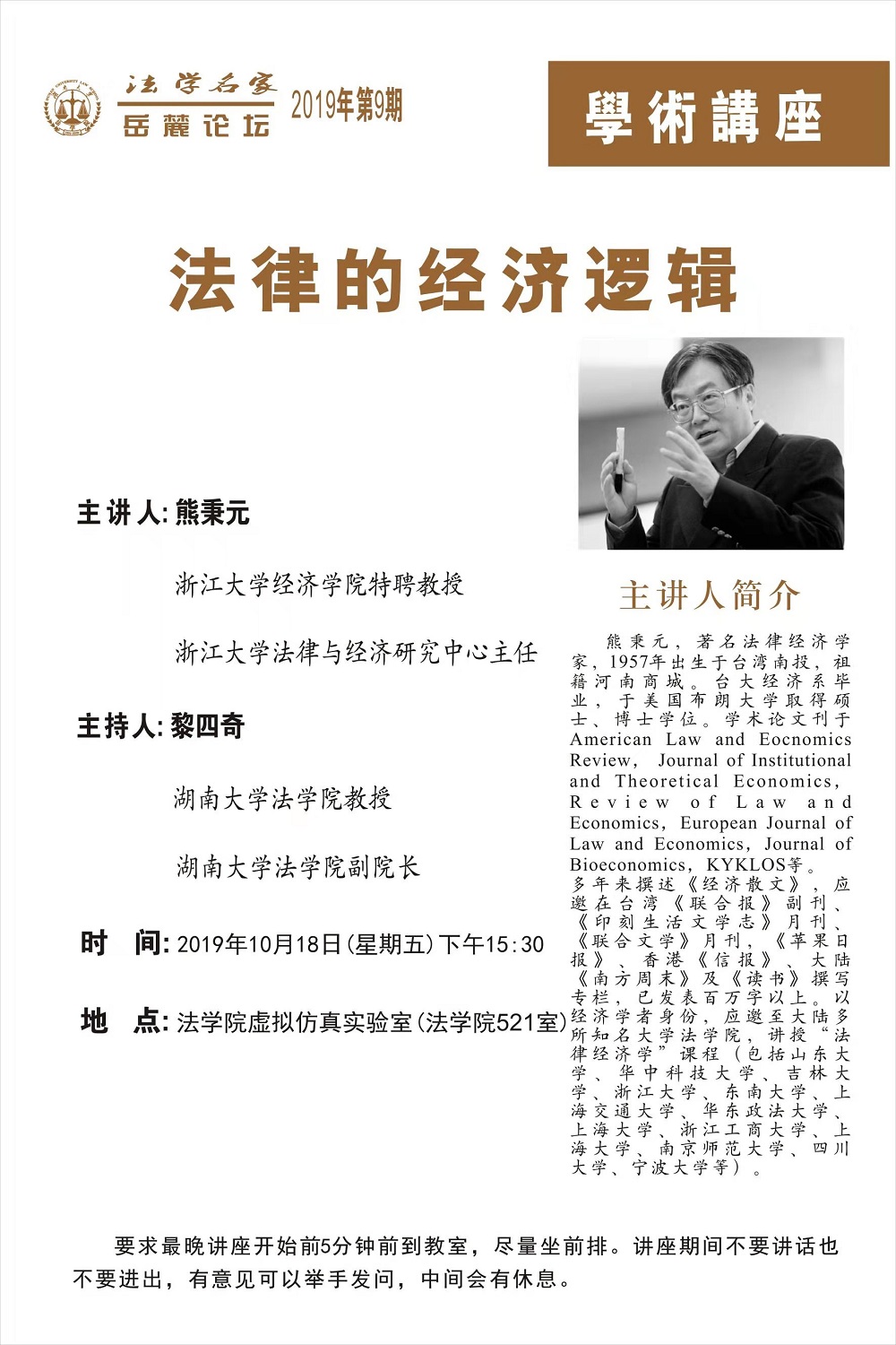 主讲人简介:熊秉元,著名法律经济学家,1957年出生于台湾南投,祖籍河南商城。台大经济系毕业,于美国布朗大学取得硕士、博士学位。学术论文刊于American Law and Economics Review, Journal of Institutional and Theoretical Economics, Review of Law and Economics, European Journal of Law and Economics, Journal of Bioeconomics, KYKLOS等。多年来撰述《经济散文》,应邀在台湾《联合报》副刊、《印刻生活文学志》月刊、《联合文学》月刊、《苹果日报》、香港《信报》、大陆《南方周末》及《读书》撰写专栏,已发表百万字以上。以经济学者身份,应邀至大陆多所知名大学五楼自拍