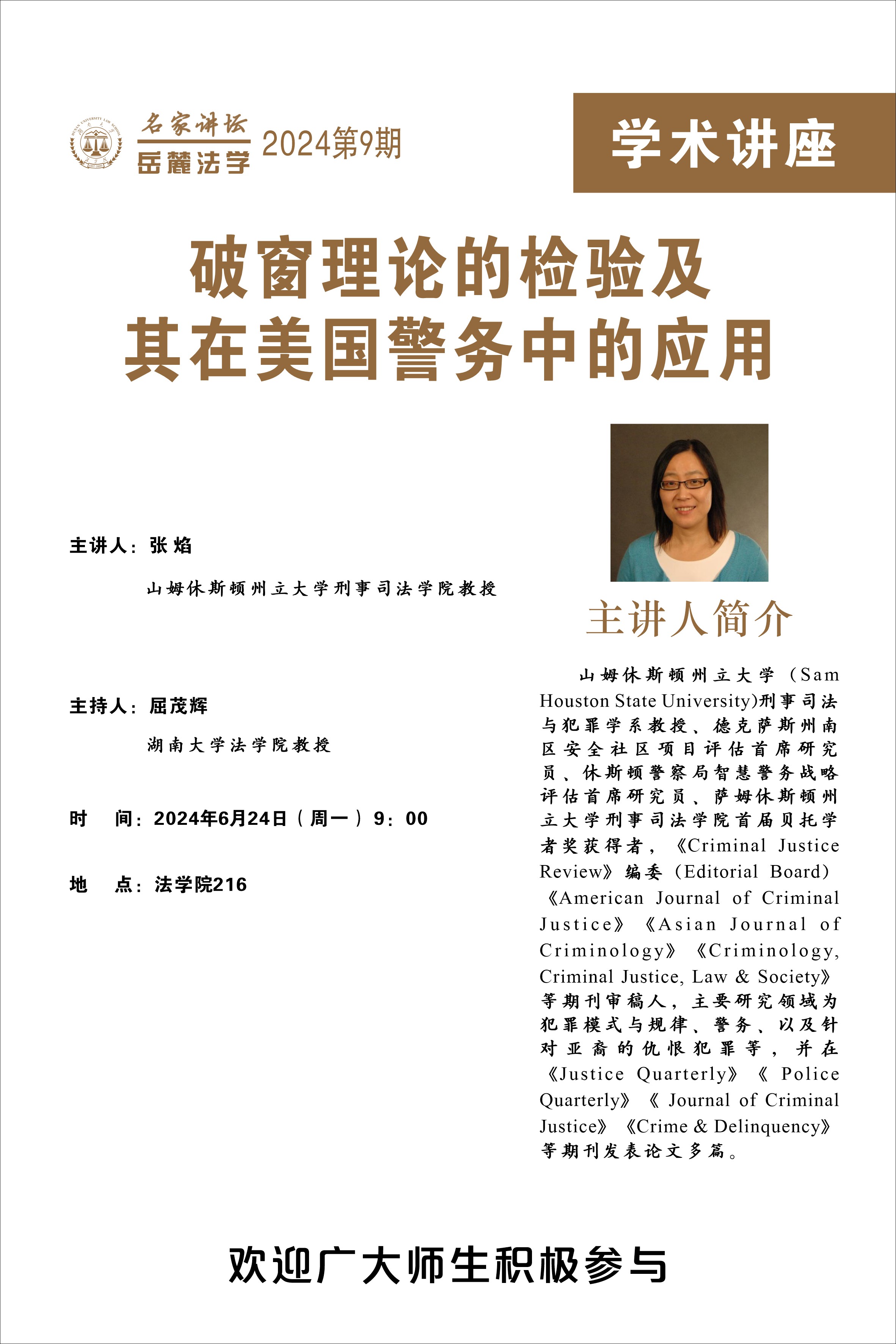 张焰,山姆休斯顿州立大学(SamHouston State University)刑事司法与犯罪学系教授、德克萨斯州南区安全社区项目评估首席研究员、休斯顿警察局智慧警务战略评估首席研究员、萨姆休斯顿州立大学刑事司五楼自拍