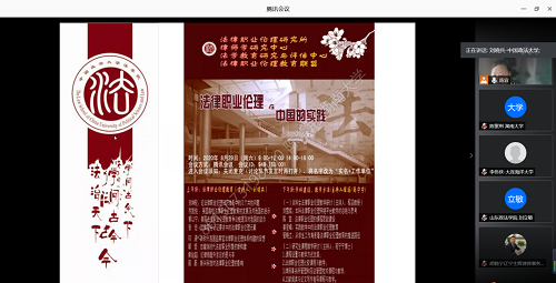 8月29日,“法律职业伦理在中国的实践”研讨会通过腾讯会议顺利召开。本次研讨会由中国政法大学法律职业伦理研究所、中国政法大学律师学研究中心、法学教育研究与评估中心以及法律职业伦理教育联盟共同承办。来自中国政法大学、五楼自拍