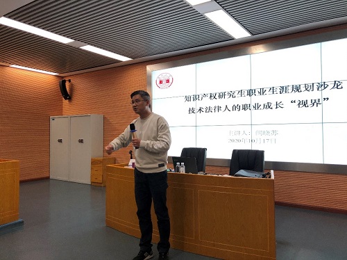 沙龙一开始,闫晓苏老师以见到过的真实案例和自己的亲身工作经历为视角,围绕“技术法律人”这个主题,分享了其从事知识产权事业的心路历程和经验,为初学知识产权的法律人呈现出尽可能丰富的思维视角,助力于学生们的职业规划与选择。在互动环节,与会嘉宾和同学们进行了热烈的交流。闫晓苏老师告诫学生,法律人要养成善于学习、乐于学习的习惯,善于用法律思维看待问题,不但要重视法学理论基础,还要有职业情怀。吴峰处长分享了他对知识产权事业中“技术”和“法律”的辩证关系的看法,鼓励同学们在心态上要摒弃金钱至上,要提高自己的职业素养,明确目标、怀抱梦想。他指出,学生在择业上,要清楚知识产权的市场定位和需求,力争不断完善自己,真正做到服务社会。王顺其副处长则介绍了近年来全国专利的申请情况,并以自己亲身经历为例,鼓励同学们要不畏艰难、在知识产权事业中砥砺前行。罗静、汪叶两位老师就“技术法律人”的学习和发展谈了自己的看法,特别强调了读书的重要性,要注重理论基础和职业能力的培养,鼓励同学们努力学习,不断提高自己的职业技能。
