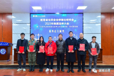 副院长蒋海松副教授主持了学术研讨会的闭幕式。省法学理论研究会副会长、湖南醒龙律师事务所党支部书记王威宣读了本次年会的论文评奖结果并颁奖。本次年会共评出一等奖论文7篇,二等奖论文12篇,三等奖论文15篇。省法学理论研究会副会长、中南大学五楼自拍