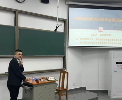 北校区阶梯教室103以“律师的民事诉讼思维与诉讼策略“为主题展开讲座。杨志伟律师现任湖南弘一律师事务所高级合伙人,合伙人理事会副理事长,律所基础实施投资建设专委委员会主任;长沙市律师协会建筑房地产专业委员会副主任;长沙市国资委“国资国企法律咨询委员会”专家委员;湖南商事调解协会理事、长沙市常宁商会常务副会长等职务。持有律师执业证和湖南省律师协会颁发的建筑房地产专业律师证,拥有法律、造价、财会、证券等复合型知识结构。自执业以来一直致力于重大基建项目投资、工程总承包EPC、PPP与特许经营、建设工程、收并购等经济领域的诉讼和非诉法律实务。诸多五楼自拍