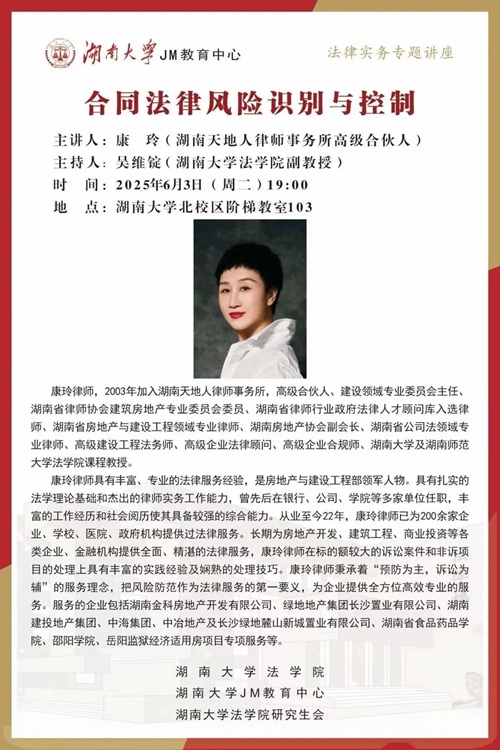 康律师以建设工程与房地产领域的丰富经验为基石,深入浅出剖析了合同风险识别的关键节点与应对策略。她列举的众多企业服务案例,生动印证了事前防范如何为发展保驾护航,令人信服其作为“高级企业合规师”的深刻洞察。这使我深刻领悟,法律人的使命在于成为企业航行中的瞭望者与护航者——以缜密思维预见暗礁,以专业智慧化解危机于未然。