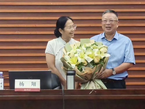 (马青波老师为杨教授献上鲜花)