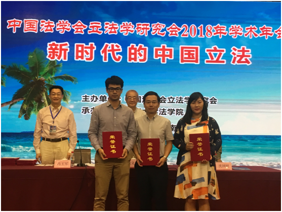 汪全军助理教授全程参加了年会的各项议程,其提交的《<立法法>第七十二条第二款中“等”的含义解释》一文获得中国法学会立法学研究会2018年学术年会“青年论文奖”一等奖。