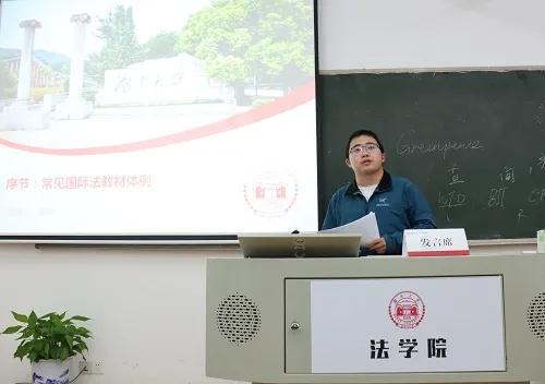 第五位出场的是龙韶老师,她主讲《国际商贸法律英语》,选择该门课程名称的由来和该课程名称中“international”的含义进行专题讲授。