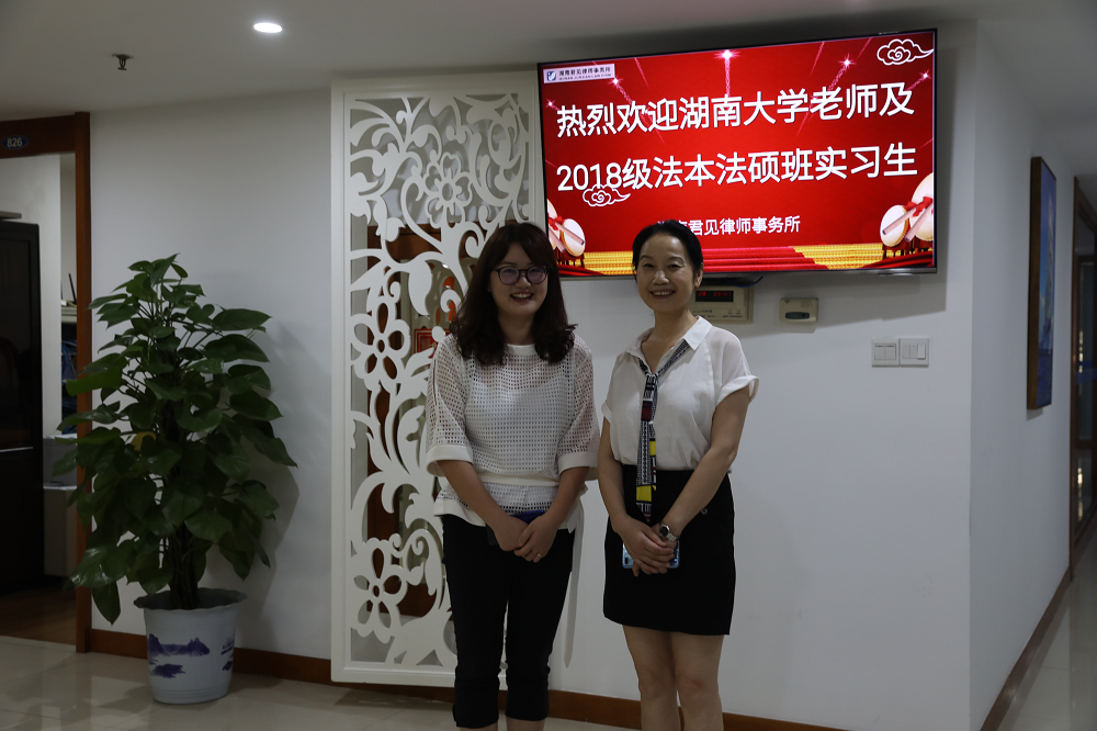 JM中心实习领导小组成员易骆之、JM教育中心副主任宋晓庆、JM中心实习指导老师邓祥瑞护送2018级法律硕士(法本)前往湖南君见律师事务所实习。