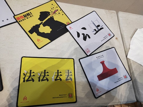 揭幕仪式及专家讲座后之后,进行了湖南法治文化作品展览。此次活动展览的作品汇聚了湖南省内外几十所大学师生、企事业单位和个人的创作成果,展览作品有海报招贴、产品设计、书法作品、法治文化阵地规划设计、影视新媒体和法治廉政文化墙设计作品,各类作品准确传达了相关法律法规信息,表达了作者追求公平正义的社会主义法治价值的愿景,有效地传播了法治文化,达到了普法效果。据中心负责人张声东介绍,此次参展的部分设计作品经湖南新时代创研品牌设计中心专家的深化设计后,已通过产学研转化成适用于各类普法宣传的产品,并成功应用于普法宣传的活动,为加速湖南法治文化建设提供了源源不断的创意源泉和优质产品。