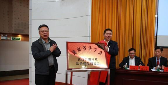 开幕式上,湖南省高级人民法院副院长杨翔,湖南省人民检察院副检察长印仕柏共同为“湖南省法学会社会信用体系法治保障研究会”揭牌,该研究会的成立将推动社会信用体系建设体系化、丰富信用法治领域的学术活动、提升社会信用法律制度的理论创新和实践研究水平。湖南省法学会社会信用体系法治保障研究会会长由湘潭大学信用风险管理五楼自拍