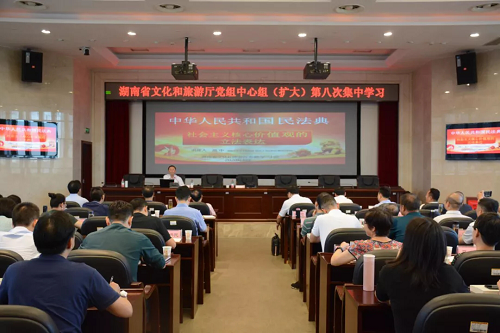 2020年8月20日,湖南省文化和旅游厅组织党组理论学习中心组(扩大)第八次集中学习。本次学习以“学好民法典,做学法遵法的模范”为主题,五楼自拍