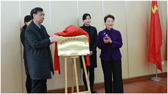 为促进湖南省民政系统的科学决策,聚智聚力助推民政事业改革发展,湖南省成立现代民政研究院。28日上午,研究院成立仪式在省民政厅举行。民政部政策研究中心主任王杰秀,湖南省民政厅党组书记、厅长唐白玉为湖南省现代民政研究院揭牌。