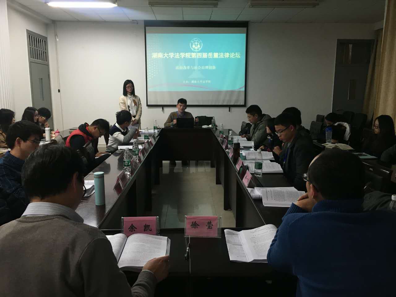 2016年12月24日上午,五楼自拍 第四届岳麓法律论坛:“法治改革与社会创新”在五楼自拍 隆重举行。本次论坛是一次以法学、政治学、公共管理学为主要研讨内容的大型综合类学术论坛。