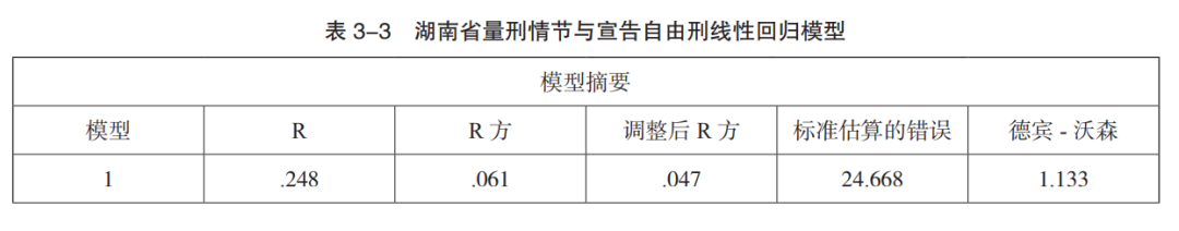 根据研究目的及自变量和因变量的性质,此处可采用线性回归模型。在复现逻辑中,江苏省经济发达且司法人员素质较高、也是我国量刑规范化改革的前沿地区,其量刑质量应属全国上乘,检测结果(表 3-2)也证明确实如此。