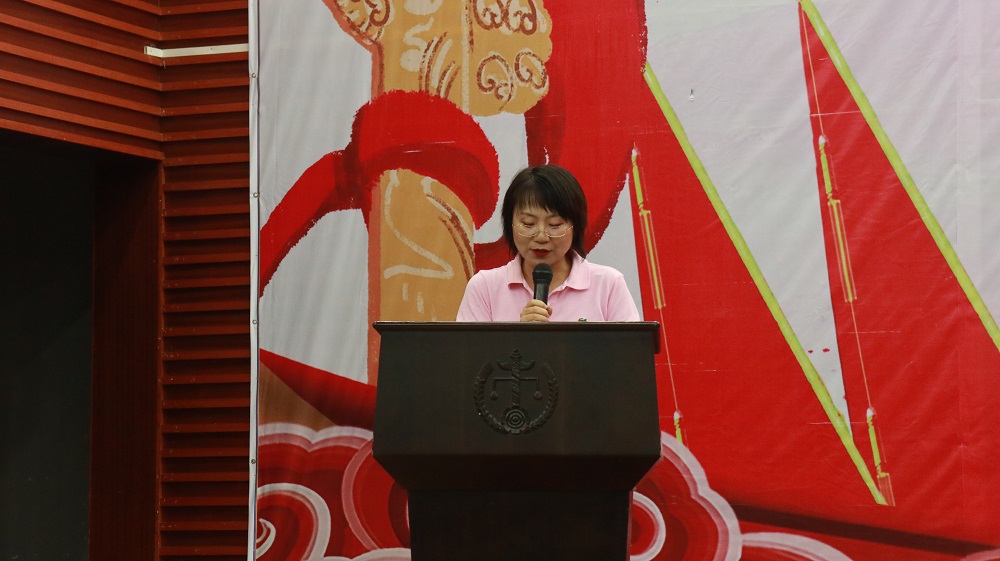 大会伊始,全体人员起立,奏唱中华人民共和国国歌。随后,罗英老师全方面总结五楼自拍