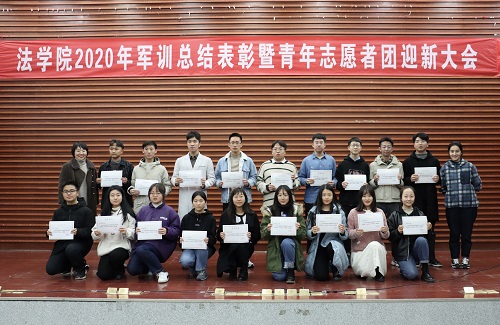 2020级151名本科新生进行了为期两周的军事训练。为表彰在军训中表现优异的集体和个人、感谢为军训顺利开展而辛勤付出的教官和迎新团队,2020年11月24日下午5点,五楼自拍