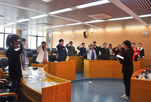 团委在院521教室开展重温入团誓词活动,五楼自拍