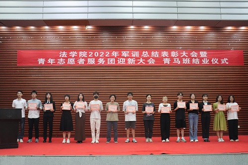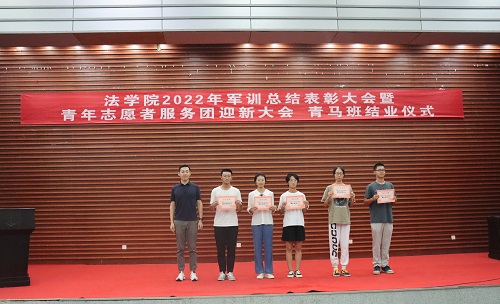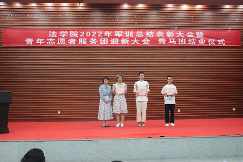 全体教官和优秀志愿者给予表彰。罗英老师、张丹老师、曹晓军老师和2022级新生班主任为受到表彰的集体和个人颁发荣誉证书。