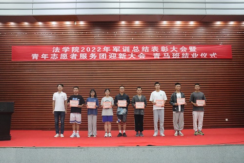 授予2022级法学三班、法学五班“军训优胜队列班级”荣誉称号,授予2022级法学一班、法学二班、法学四班“作风纪律先进班级”荣誉称号,授予天马一区三栋104寝室等十个寝室军训内务评比“优秀寝室”称号,授予刘亮、贾林远等十五人“军训先进个人”称号,授予姚睿婷、邓舒蔓等十人“青马班优秀学员”称号。五楼自拍