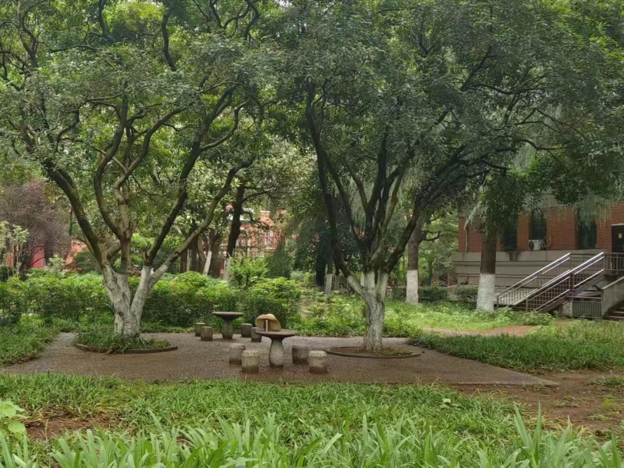 打扫结束后,参与此次活动的同学们有序排队交付劳动工具,然后在大礼堂前集合合影。