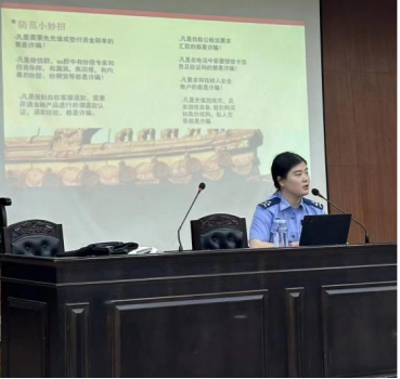 接下来,王紫威警官为我们进行了防范电信诈骗宣讲。王紫威警官首先与同学们进行互动,询问同学们在生活当中是否遇到过电信诈骗,引出宣讲主题,随后点明电信网络诈骗的概念和特点,并总结了常见的诈骗类型:刷单返利、诈骗电话、冒充类诈骗、网络交友。而后王警官还向我们科普了国家反电信诈骗电话“96110”和预警劝阻的实际操作,最后为大家分享防范电诈小妙招,比如拒绝刷单、拒绝向所谓的“公检法”机关柜款、拒绝随意将自己的信用卡或银行卡借给他人等。