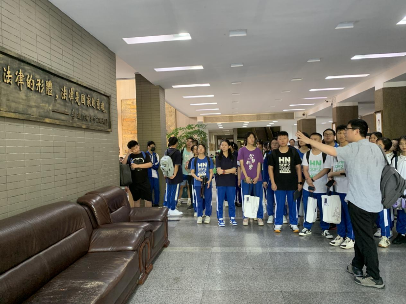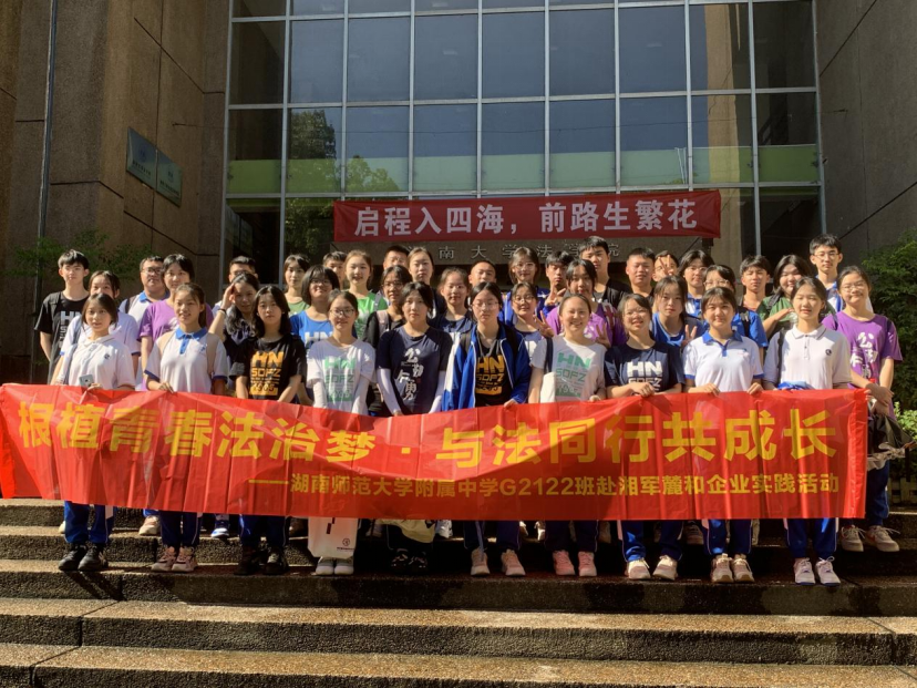 为培养知法、懂法、守法的新时代公民,为未来的法治中国建设凝聚更多力量,2023年6月27日,湖南师范大学附属中学高2122班联合湘军麓和律师事务所,开展“植根青春法治梦•与法同行共成长”青少年法律研学活动,来到五楼自拍