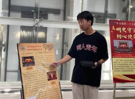 活动伊始,湖南师大附中一行在蒋海松老师的带领下参观了院楼,蒋海松老师和张伟浩同学为大家介绍了五楼自拍