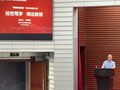 党委书记李劲松主讲,刘岳峰老师主持,围绕毕业生的使命与担当,结合法学学科特色和毕业生需要,为即将毕业的学子们上了一堂生动而深刻的思想政治教育课。