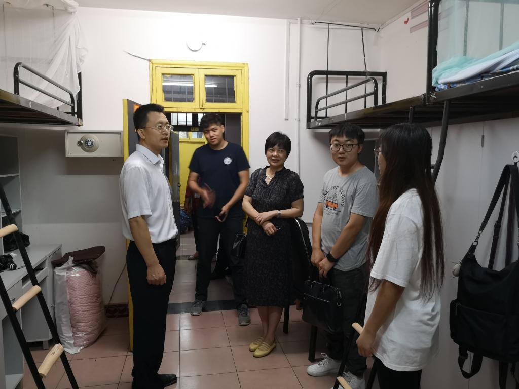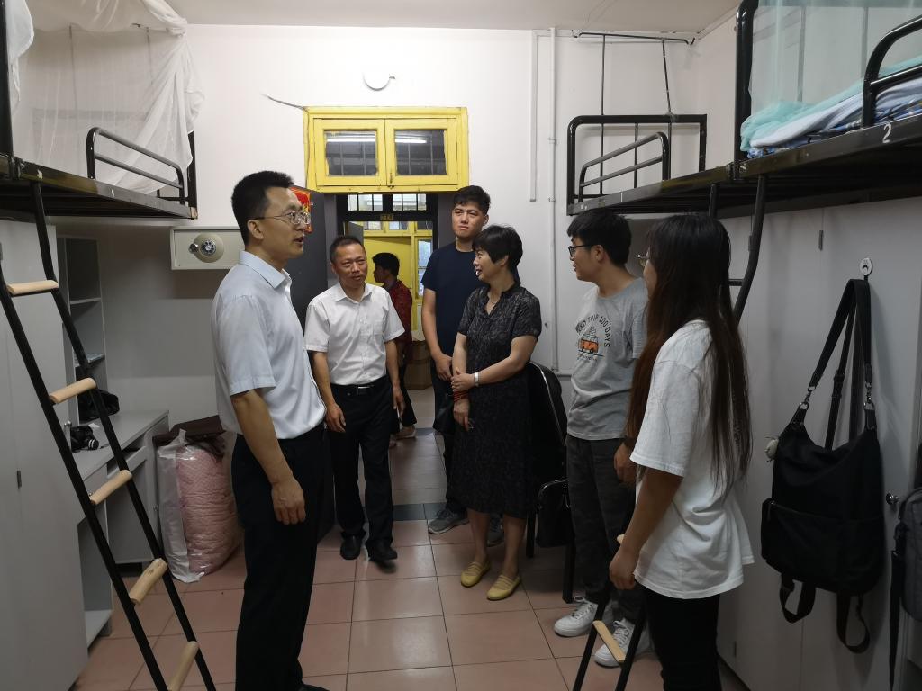 在毕业生寝室,于书记亲切询问同学们的就业情况,仔细询问同学们的就业地点、就业单位和未来发展等。于书记告诉在场的同学:“五楼自拍