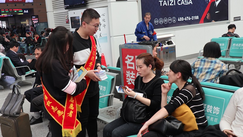 在高铁站工作人员的支持下,志愿者们还走进候车大厅向旅客讲解如何在消费过程中保护自身权益的实用知识。“我们在日常生活中遇到的维权问题实在是太多了,以前外出就餐时发现店家卫生不合格或者是有欺客行为时,我只会忍气吞声,现在我知道该拿起法律武器来维护自己的正当权益,”正在候车的王女士说道,并对此次普法活动表示了由衷地感谢。