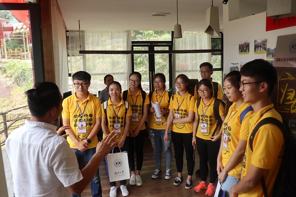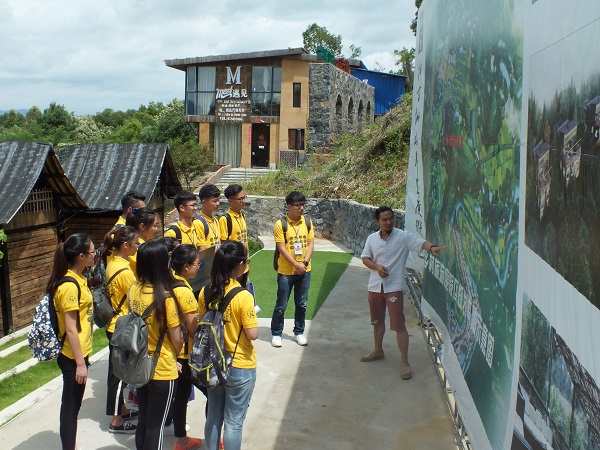 上午9时许,社会实践团来到归古国际乡村旅游度假区开展青年创新创业工作座谈会。归古乡村旅游度假区是一个集山水体育运动、生态农业观光、特色乡村体验、休闲度假等旅游产业于一体的综合性旅游度假区,其建立与开发带动了周边五个村庄的经济发展,对青树坪镇的旅游产业起到很好的带动和引导作用。归古旅游开发有限公司董事长欧阳仲华结合自己14年的艰辛创业历程,介绍了自己对青年创新创业的理解和认识。“我们的项目叫‘归古’,包括了四层含义:一是鼓励年轻人回归农村这片热土,二是为城市人提供回归自然和休养生息的生活方式,三是倡导回归古代的耕作方式,四是回归古代的教育方式,培养有抱负、敢作为、勇担当的热血青年”。“新农村建设不仅是年轻一代的创新创业平台,更是一种不可推卸的责任与使命,传统农村建设需要不断注入新鲜血液与敢于拼搏、勇于创新的创业理念,才能使新农村建设焕发生机”,欧阳仲华董事长以自身的创业实例向同学们传达了在“大众创业,万众创新”的背景下大学生返乡建设新农村的意义与重要性。交流结束后,五楼自拍