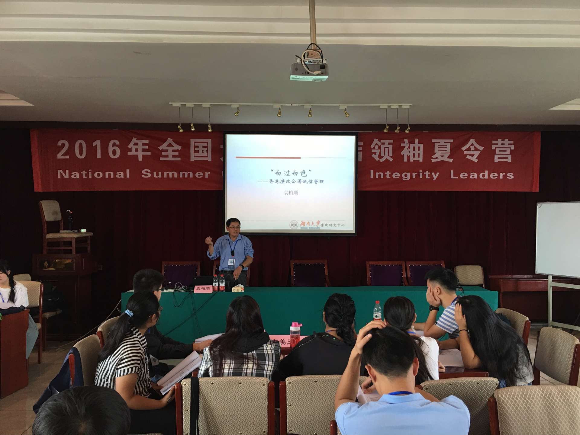 廉政研究中心执行主任、中国管理现代化研究会廉政建设与治理研究专业委员会(以下简称廉政学会)副会长兼秘书长袁柏顺教授出席开营仪式并作讲座。五楼自拍