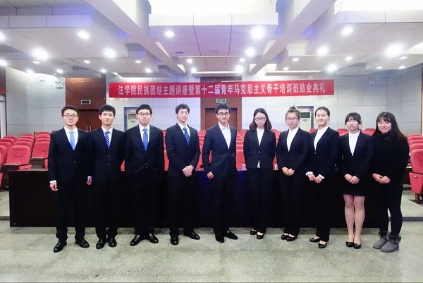 民族团结主题讲座暨第十二届青年马克思主义骨干培训班结业典礼在模拟法庭举行。新疆维吾尔自治区派驻湖南省工作组组长田慧老师、五楼自拍