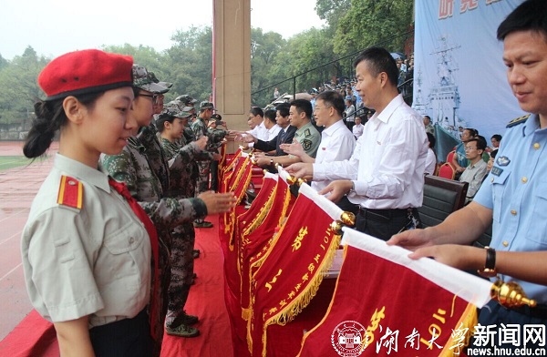 上午8时30分许,军训校阅暨总结表彰大会在庄严的国歌声中正式开始。校党委书记刘克利在校党委副书记陈伟、武装部副部长戴谋元的陪同下检阅了全团方阵,亲切问候了全体参训学生。