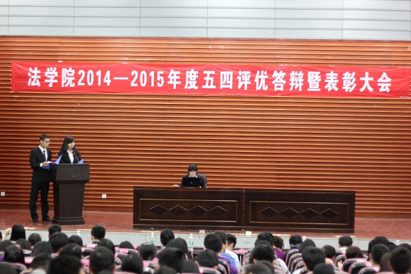 2014—2015年度五四答辩暨表彰大会在充满青春与朝气的中国共产主义青年团团歌声中圆满结束。(林义朗、杨凯)
