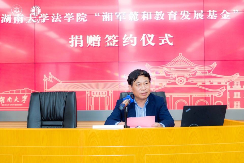 发展联络处处长、教育基金会秘书长邓利华与湖南湘军麓和律师事务所主任李含英作为双方代表签署捐赠协议。