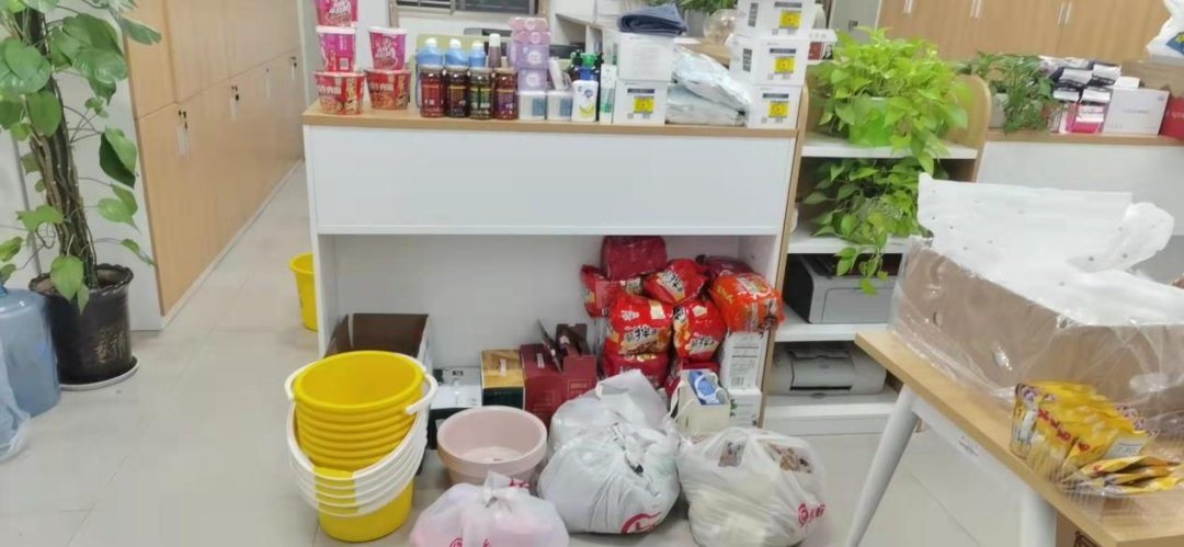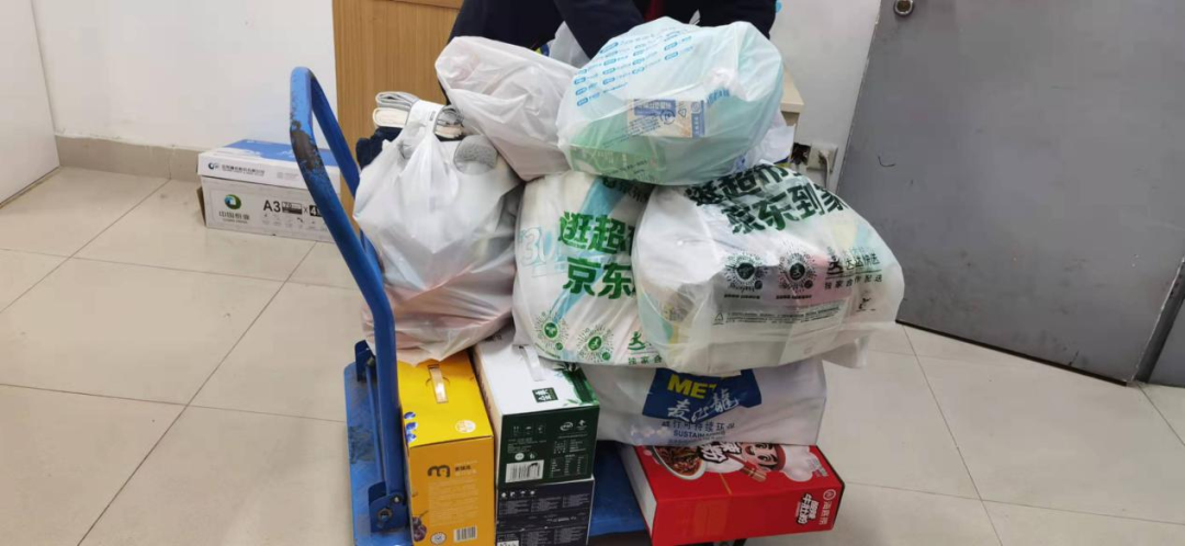 岂曰无衣,与子同袍。校友们送来的物资里,不仅有口罩、消毒液、湿纸巾等防疫物品,还有牙刷、毛巾、方便面等生活用品,迅速帮助留守在五楼自拍