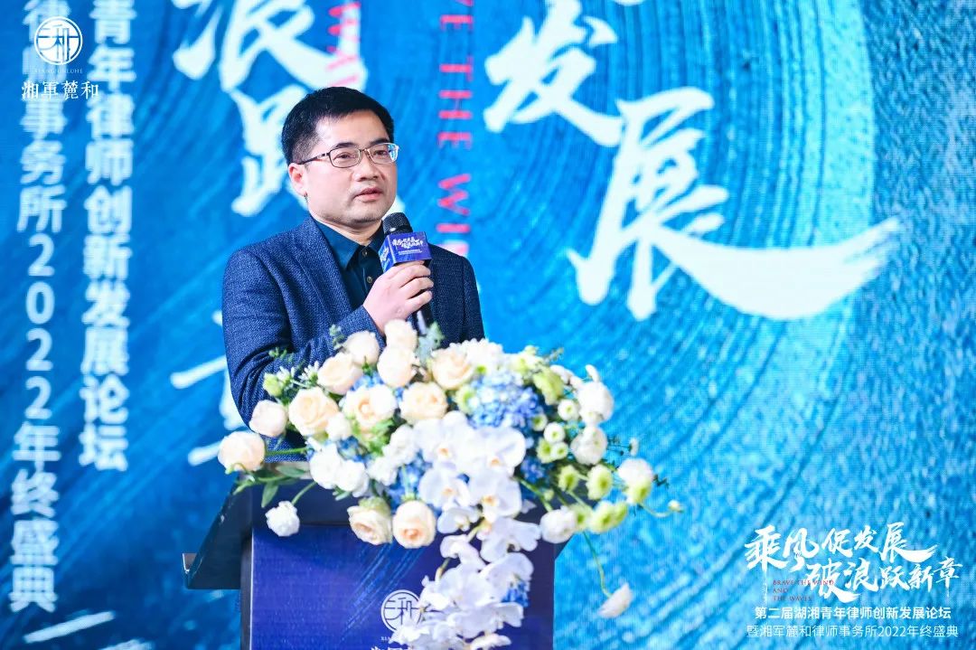 他表示,2022年,是艰难的一年。在充满不确定的年份,湘军麓和顺应新发展格局,始终坚持党建引领,坚持文化聚魂,坚持专业立身,于逆境中踔厉奋发、勇毅前行,实现了稳中有作为,调速不减势,增效质更优。从整体数据来看,2022年律所发展的基本面向好,业务后劲进一步增强,规模进一步扩大,结构进一步优化,管理质量进一步提升。