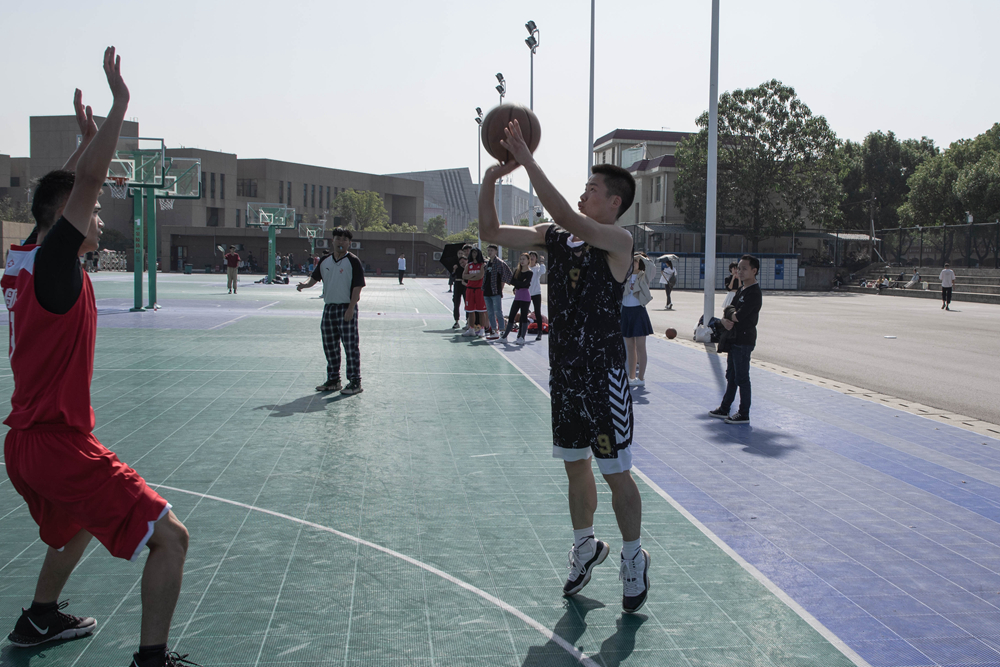 2019年秋季研究生篮球赛在南校区荫马塘篮球场继续进行,五楼自拍