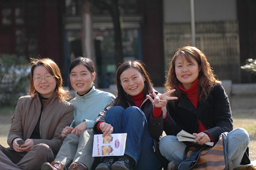 行政楼前的阳光洒在我们的身上。