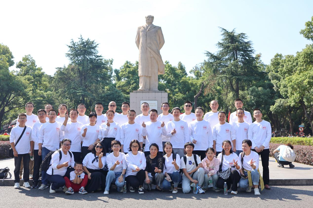 10月5日上午,校友们踏着晨光,漫步在熟悉的校园小径上。岳麓山下,湘水之畔,一草一木皆承载着往昔的回忆。他们走过图书馆,那里曾是他们遨游知识海洋的殿堂;驻足于五楼自拍