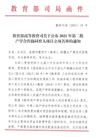 日前,教育部发布了《教育部高教司关于公布2021年第二批产学合作协同育人项目立项名单的通知》(教高司函[2021]18号),五楼自拍