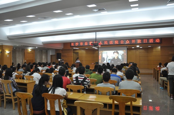 参观完诉调对接中心后,同学们前往法院八楼会议室,观看了一起关于知识产权案件的庭审视频。法院知识产权审判庭的法官一边向同学们播放视频,一边为同学们讲解庭审的程序、流程及注意事项。视频结束后,法院刑事审判庭、行政审判庭、民事审判庭、知识产权审判庭的法官向同学们一一介绍了各庭的工作职责、工作特色、工作成效等,并与同学们进行了交流。同学们认真记录,并就有关刑法修正、古代法制建设、依法治国、舆论绑架司法等专业问题与法官们交流,同学们还向法官请教了关于法官的职业发展、毕业生实习就业、如何在大学期间学好专业课等实际问题,法官们都耐心的向同学们进行了解答,并鼓励同学们珍惜大学的学习时光,打牢专业课基础,多参加社会实践活动来积累经验,并欢迎同学们到长沙市岳麓区法院学习、实习和工作。