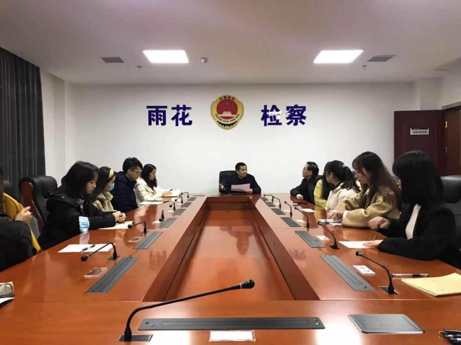 实习团队在邓祥瑞老师的带领下来到长沙市雨花区人民检察院。长沙市雨花区人民检察院曾荣获“全国优秀检察院”称号,雨花区人民检察院党组成员、副检察长曾永清、政治部副主任刘雅对实习团队的到来表示热烈欢迎,并主持召开了见面会。