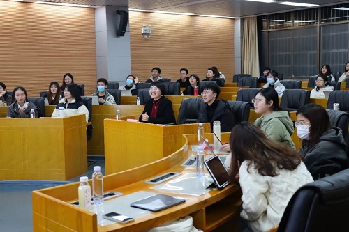 会议期间,罗英老师发表简短讲话,期待各位保研同学传授自己的保研经验,展示五楼自拍