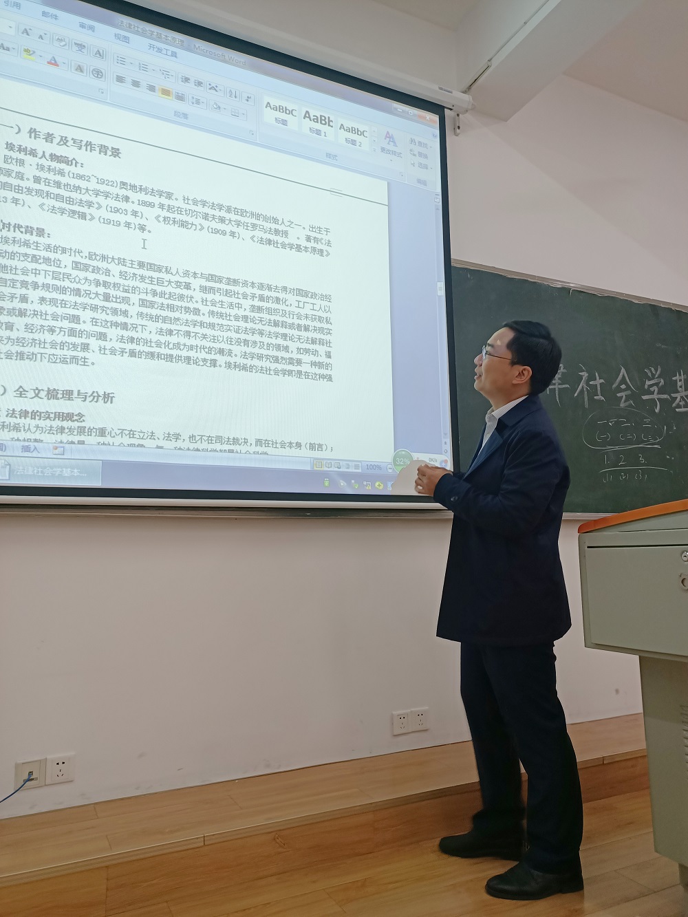 本次读书会的阅读篇目是欧陆法社会学的奠基人尤根·埃利希的《法律社会学基本原理》。在此书中,埃利希提出和阐述了“活法”论、法律发展的社会重心论、法律的自由发现论及法社会学的研究方法。这本书涵括了学界对法律社会学基本原理做出阐释的每一次尝试。为进一步提高同学们的写作能力,汪老师改变以往读书会的模式,本学期读书会不再采用小组汇报展示的方式,而是采取读书报告分析研讨的新形式。这要求同学们对读书会书目提前进行阅读,然后以小组为单位撰写读书报告。