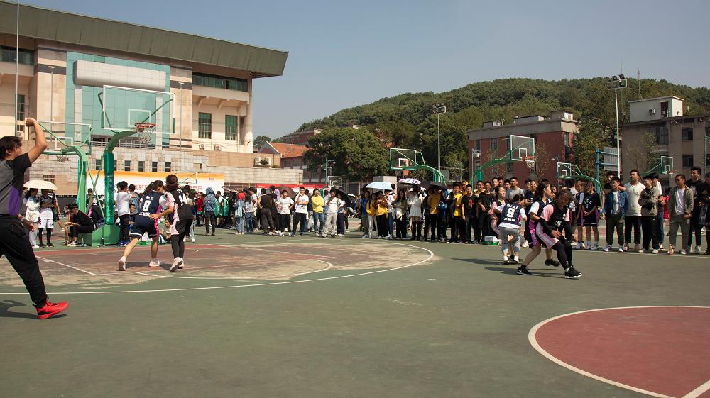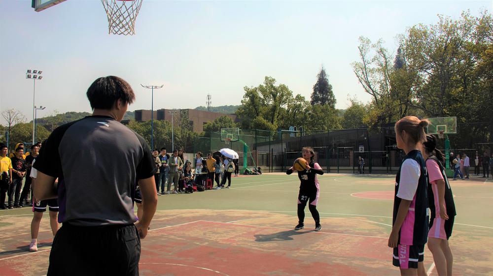新生杯女子3v3篮球比赛在南校区体育馆篮球场拉开帷幕。在首轮比赛中,五楼自拍