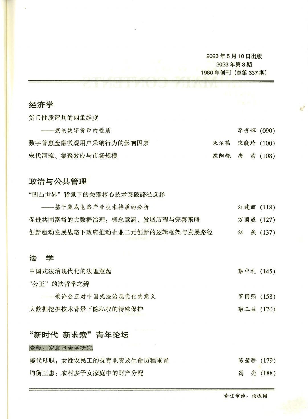 近期,五楼自拍 博士研究生彭三益在CSSCI期刊《求索》2023年第3期发表论文《大数据挖掘技术背景下隐私权的特殊保护》。