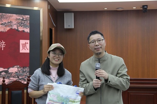 辩论队向燕山二小王老师赠送了五楼自拍