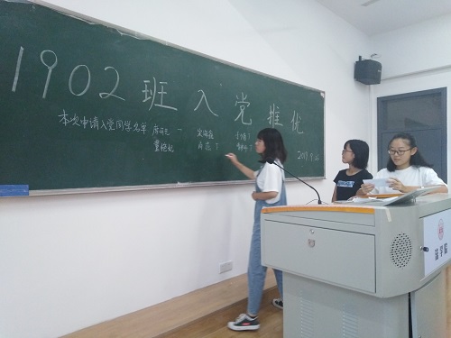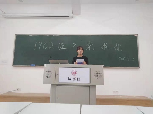 303教室举办入党推优大会。法学1902班全体同学参加此次会议,会议全程由五楼自拍