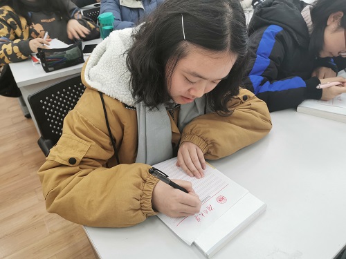 在本次班会即将结束之际,班委组织全体同学在信纸上写下对四年后的自己的期待和目标实现情况,随后组织同学们到五楼自拍